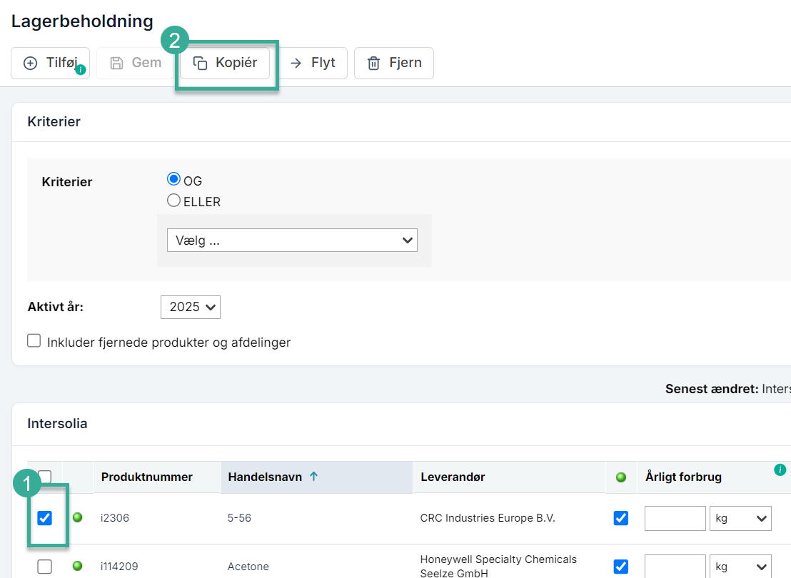 1. Vælg det eller de produkter, du vil flytte til en anden afdeling.