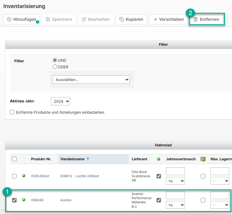 Wenn Sie ein Produkt haben, das in mehreren abteilungen in iChemistry inventarisiert ist, Ihr Unternehmen aber beschlossen hat, das Produkt nicht mehr zu verwenden, gibt es eine Möglichkeit, es aus allen abteilungen gleichzeitig auszusortieren.Am einfachsten geht das im Modul für die Substitution.