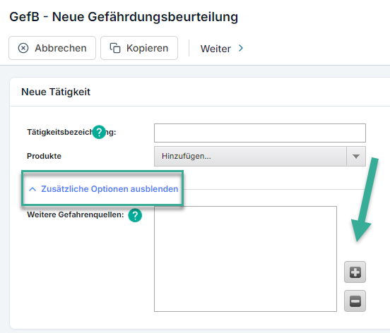Hinzufügen einer zusätzlichen Risikoquelle in der Anpassung