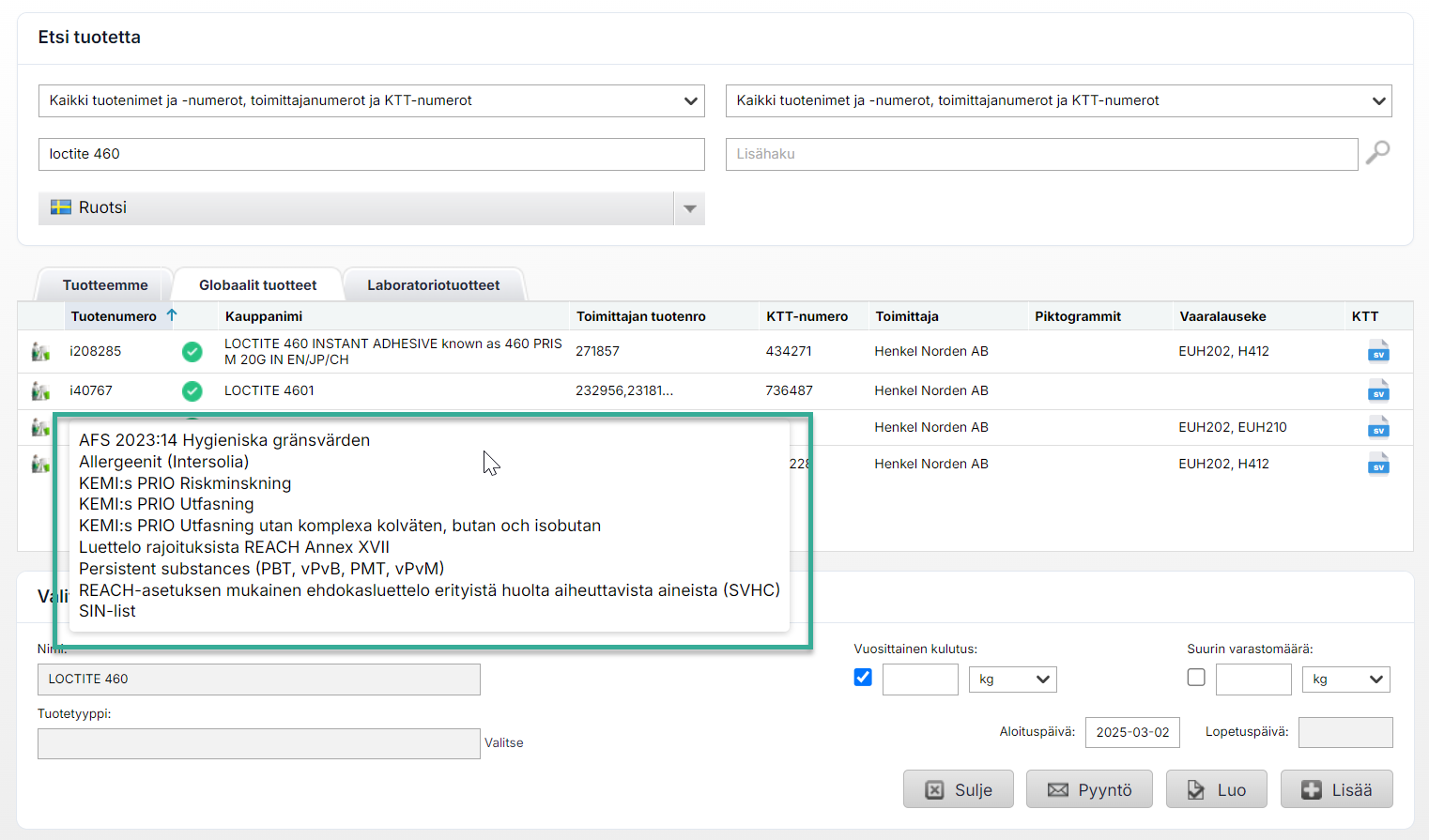 Vie hiiri i-numeron päälle nähdäksesi, kuuluuko lisää tuote rajoitusluetteloihin!